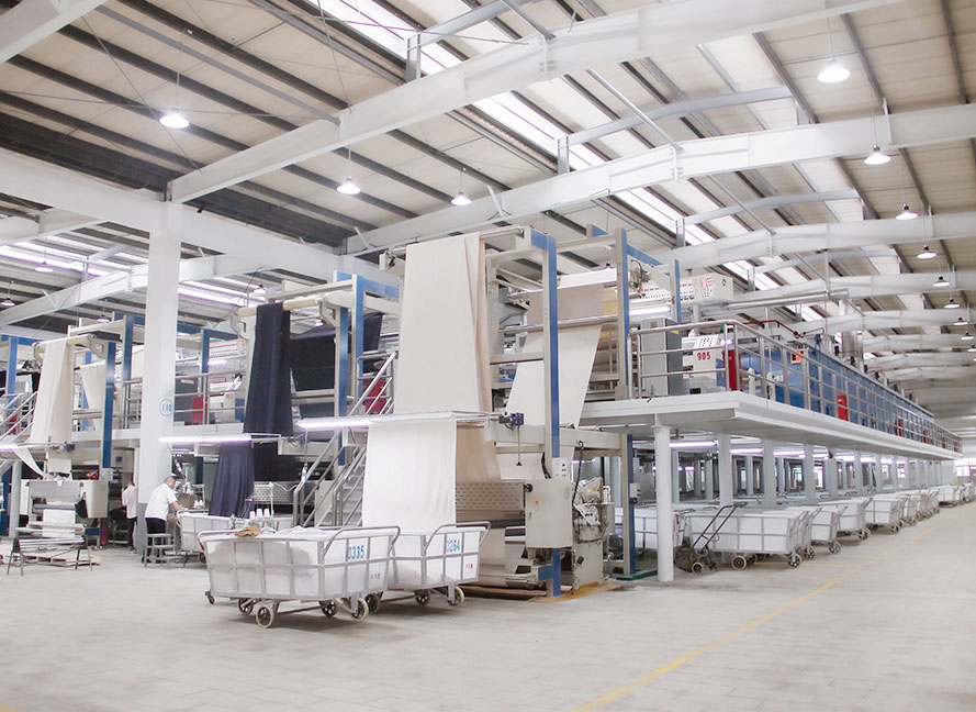拥有罐蒸、预缩、轧光、蒸呢、空拍、抓剪毛等后整理设备。